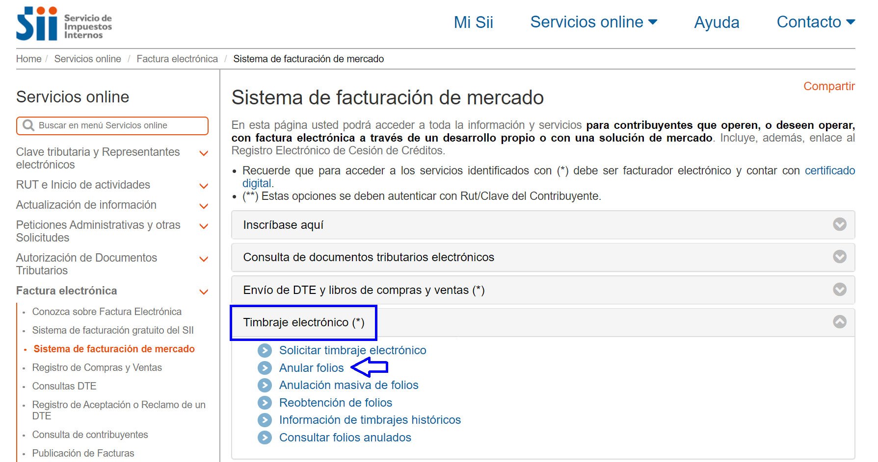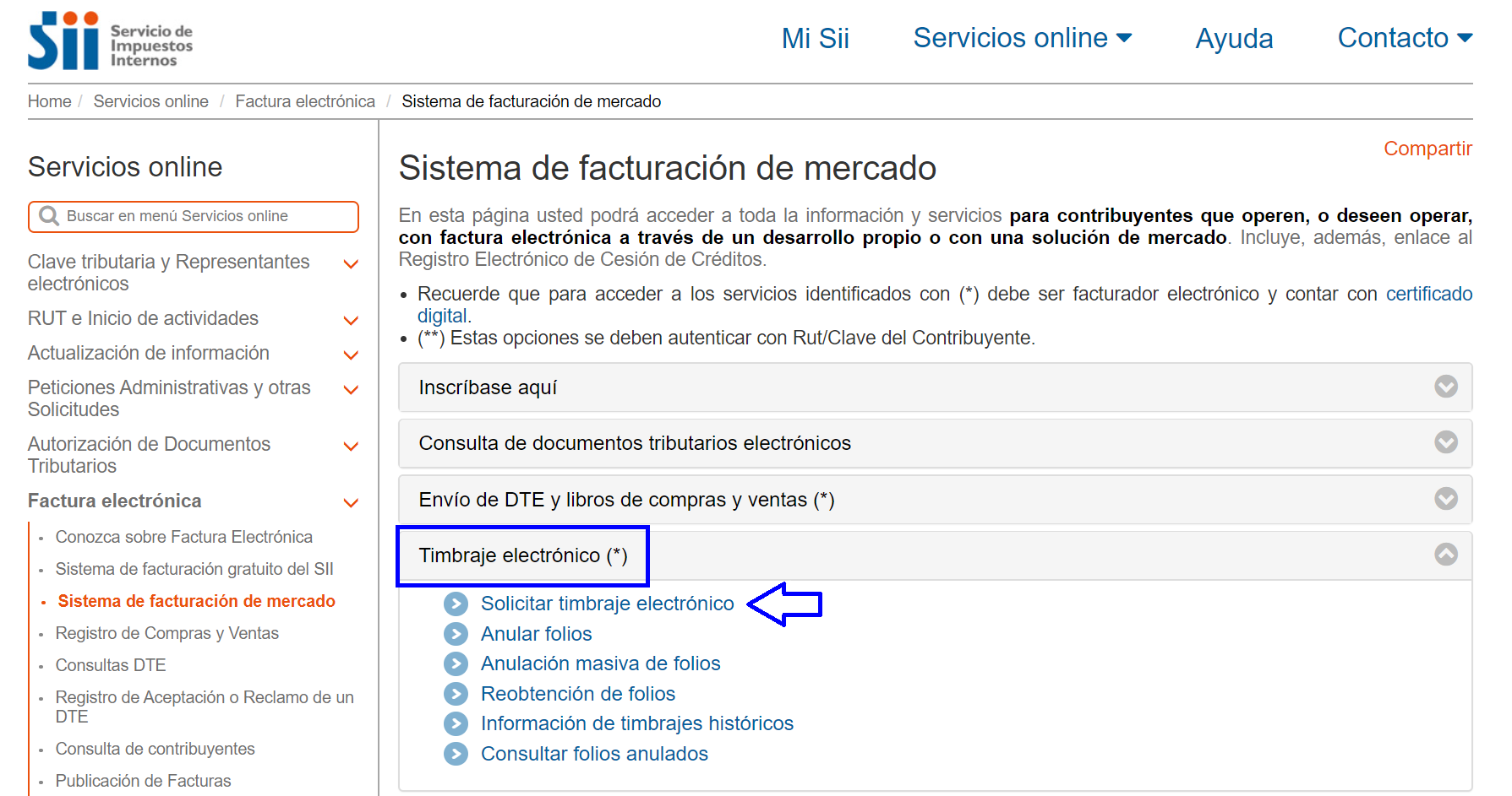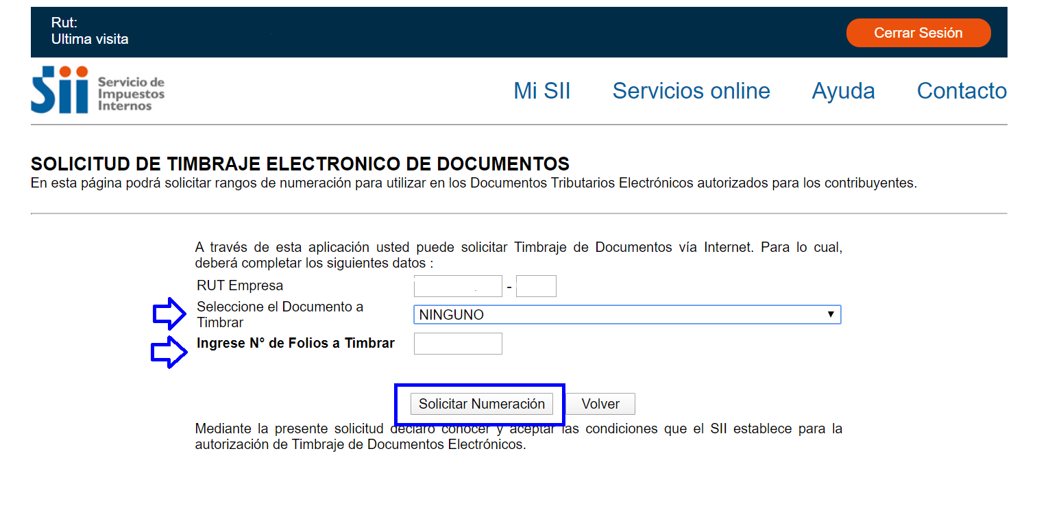 Solicitar timbraje electrónico en el SII