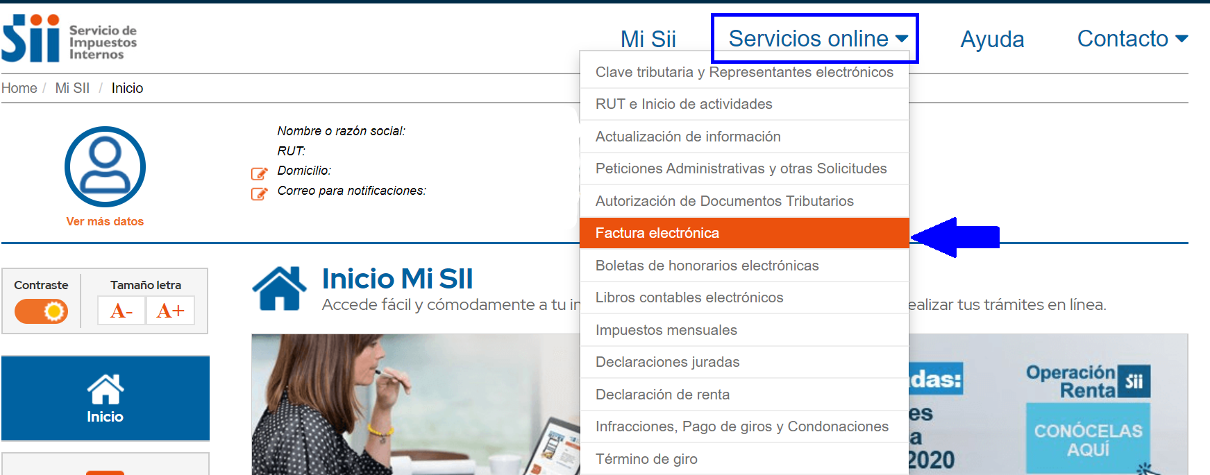Haz clic en el menú Servicios online -> Factura electrónica