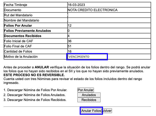 Anular folios vencidos de forma masiva en SII