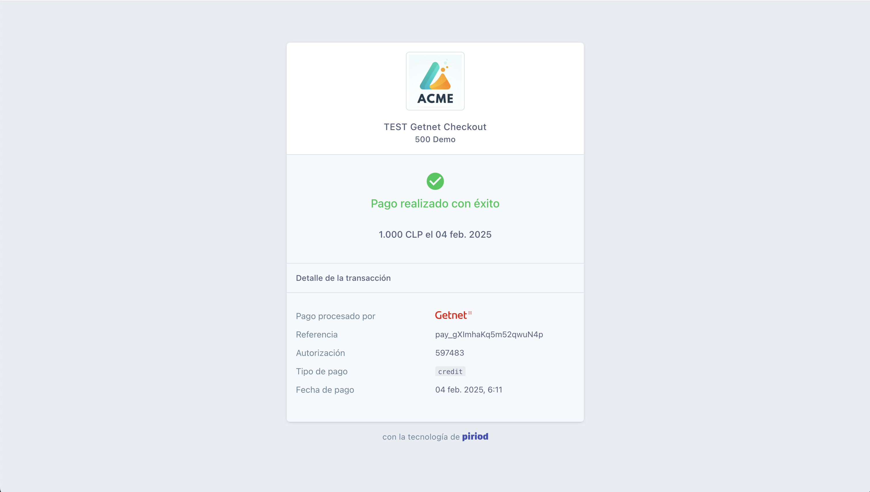 6 - Finalmente puedes visualizar el detalle de la transacción en tu dashboard de Piriod