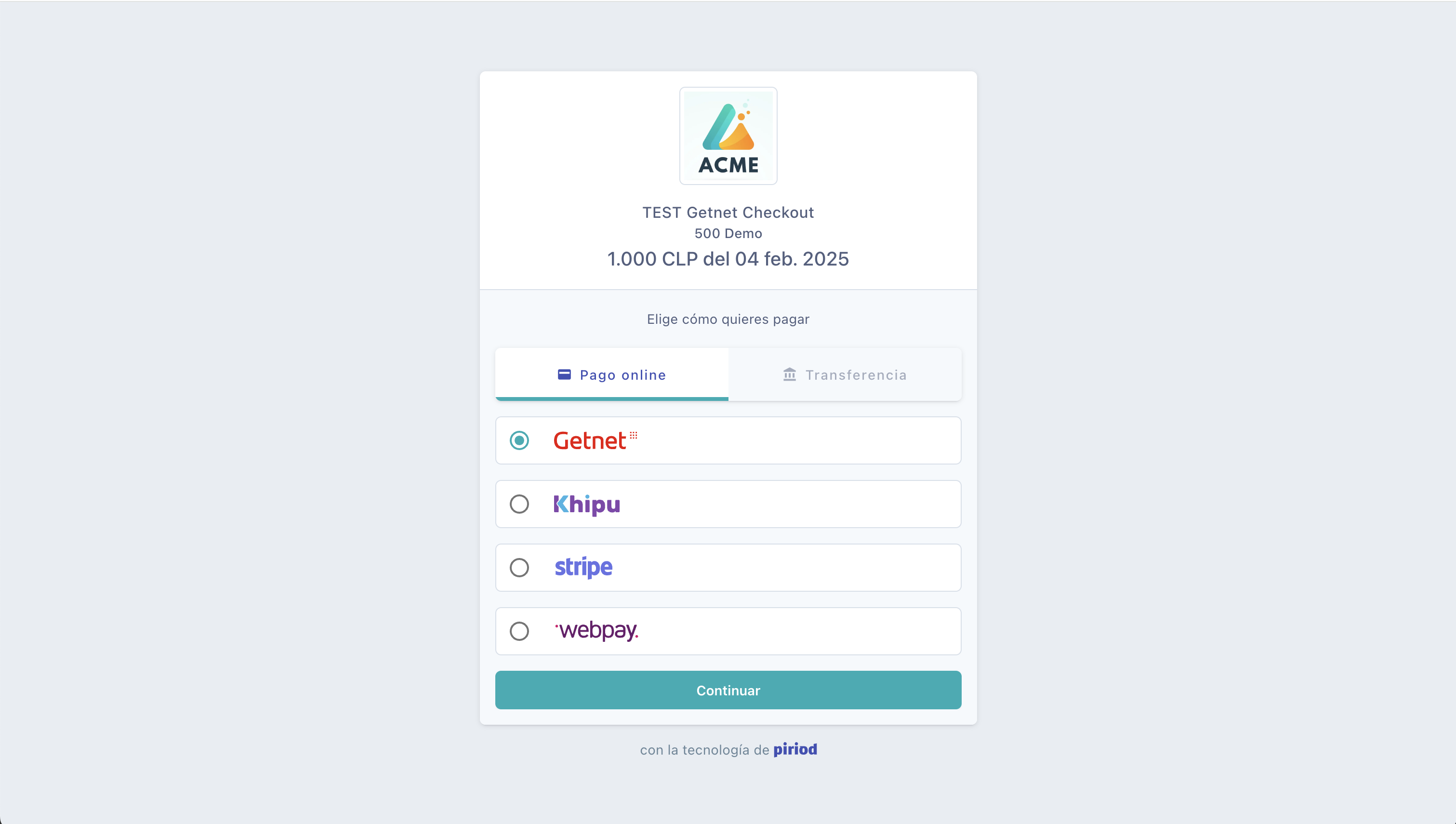 4 - Ahora, selecciona el pago por Getnet y haz click en el botón Pagar para iniciar el proceso.
